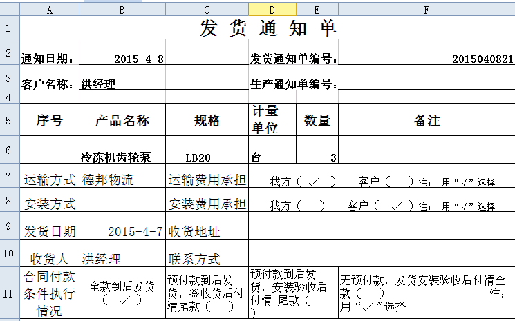 武漢洪經(jīng)理訂購的LB冷凍機齒輪泵昨天已發(fā)貨。以下是明細發(fā)貨通知單: