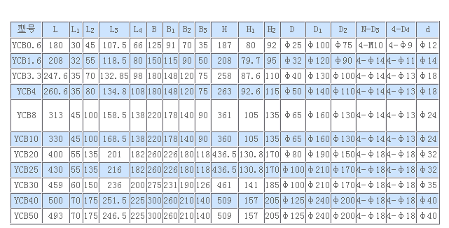 泰盛泵閥提供_全的YCB圓弧齒輪泵各型號的安裝尺寸及重量,YCB圓弧齒輪泵齒輪采用雙圓弧正弦曲線齒形制造。它與漸開線齒輪相比_突出的優(yōu)點是齒輪嚙合過程中齒廓面沒有相對滑動,所以齒面無磨損,運轉(zhuǎn)平穩(wěn),無因液現(xiàn)象,噪音低、壽命長、效率高。YCB圓弧齒輪泵主要有齒輪、軸、泵體、泵蓋、軸承套、軸端密封等組成。齒輪采用雙圓弧正弦曲線齒形制造。它與漸開線齒輪相比_突出的優(yōu)點是齒輪嚙合過程中齒廓面沒有相對滑動,所以齒面無磨損,運轉(zhuǎn)平穩(wěn),無因液現(xiàn)象,噪音低、壽命長、效率高。該泵擺脫了傳統(tǒng)設(shè)計的束縛,使得齒輪泵在設(shè)計、生產(chǎn)和使用上進入了一個新的領(lǐng)域。
