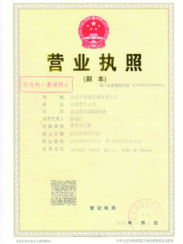 公司名稱:泊頭市泰盛泵閥有限公司 公司地址:泊頭市104國道東側(cè) 電話:0317-8293100 傳真:0317-8293100